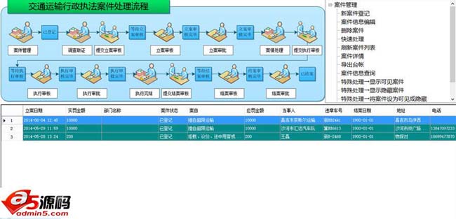 《运政执法系统》(运政通)属于《交通运输综合执法系统》下的一个子系统,专门针对运政管理机构业务做了特别优化和精简、补充,主要用于市(县)级运管机构的执法人员进行现场调查取证、案件处理、执法文书的制作打印、执法业务流程管理。
