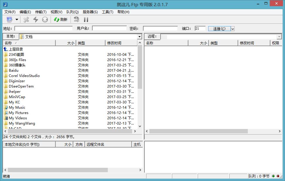就这儿FTP工具所有的功能。不占内存,体积小,多线程,支持在线解压缩。界面友好,操作简单,可以管理多个ftp站点,使用拖拉即可完成文件或文件夹的上传下载。智能升级检查,免费升级。站长永久免费FTP上传工具。