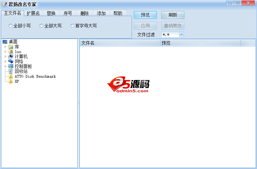 君扬改名专家是款简单方便的批量改名工具,根据不同的选项或规则,批量修改文件名,扩展名,大小写方式改名,序号方式改名,插入和删除部分名字等。