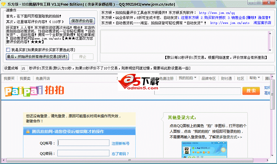 拍拍网卖家/买家批量评价工具。免费版拍拍卖家/买家不可多得的免费工具!