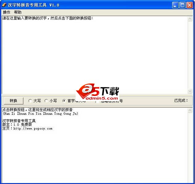 汉字转拼音应该是日常用得比较多的一种查询工具,本源码提供超过3000个汉字的转换为拼音,对照方式有:一、单一的汉字转拼音,二、中文对照拼音,提供符号设置,包括有保留中文标点符号、保留字母和回车符号、中文字之间加空,还有人性化的复制,粘贴,清空等功能! 目前只支持IE浏览器,360安全浏览器,搜狗浏览器等以IE浏览器为内核进行二次开发的浏览器,,但不支持火狐浏览器,谷歌chrome等浏览器,HTML版,无需数据库,上传即可使用!