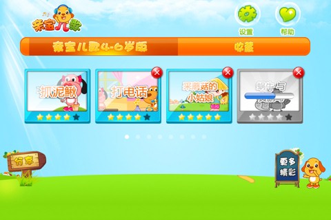“亲宝儿歌4-6岁”中的每一首歌曲,具有画面清新柔和,声音清脆悦耳,表现方式童真童趣,每一首都配有字幕的特点,特别适合4-6岁的小朋友观看,让儿歌陪伴宝宝快乐地度过1080天,赶快来下载安装吧!