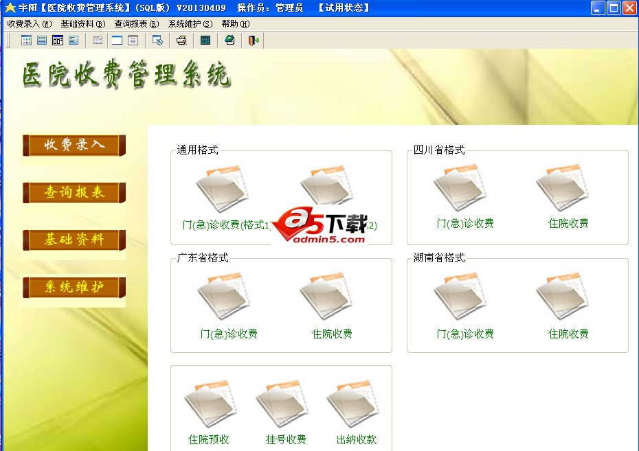 宇阳“医院收费收据打印及统计软件”,有单机版和SQL版本,可以实现联网管理,数据安全稳定!软件功能全面,其界面简洁,操作简单易懂!欢迎免费下载使用!