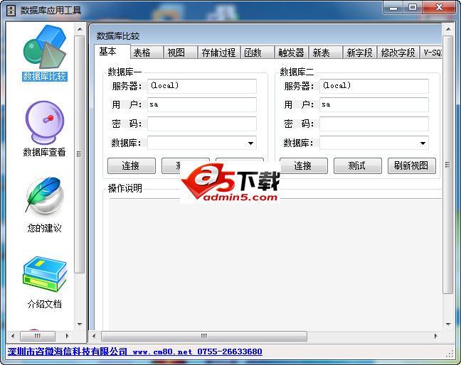 1、快速的比较两个库之间表、视图、存储过程、函数和触发器的不同,并可以生成SQL脚本,执行SQL脚本就可以完成两个库的同步操作;