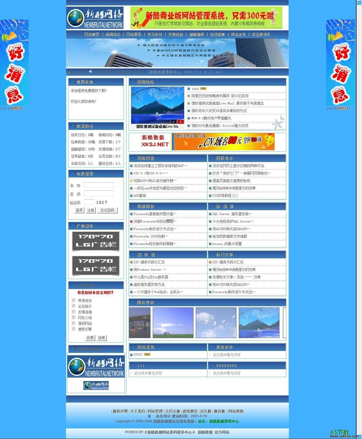 新酷网络 解压后即可投入使用,基本设置可在后台搞定,同时也有管理员帮助系统,使您快速掌握本系