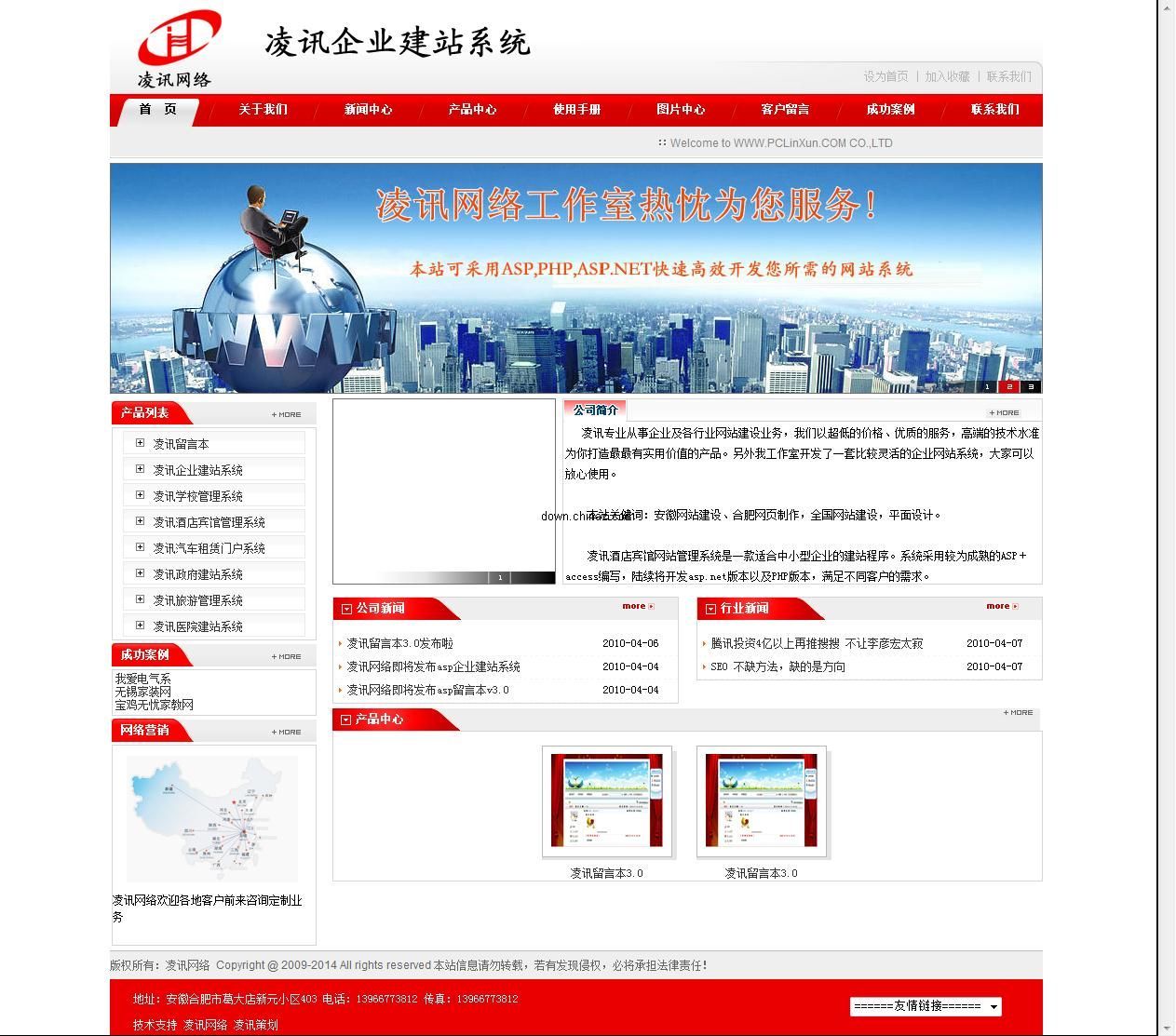 凌讯企业网站管理系统完善的网站子模块,如企业简历,企业文化,企业新闻,业内资讯,产品展示,下载中心,企业荣誉,营销网络,人才招聘,客户留言,会员中心