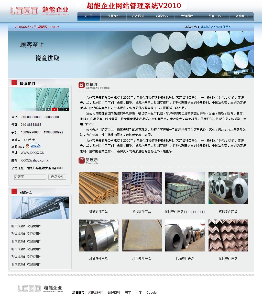 首 页 公司简介 产品展示 新闻中心 营销网络 留言中心 联系我们 后台:admin/Login.asp 帐号:admin 密码:admin