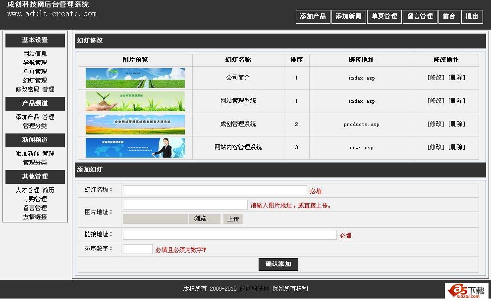 动画广告管理:幻灯片管理 自定义广告位管理;
