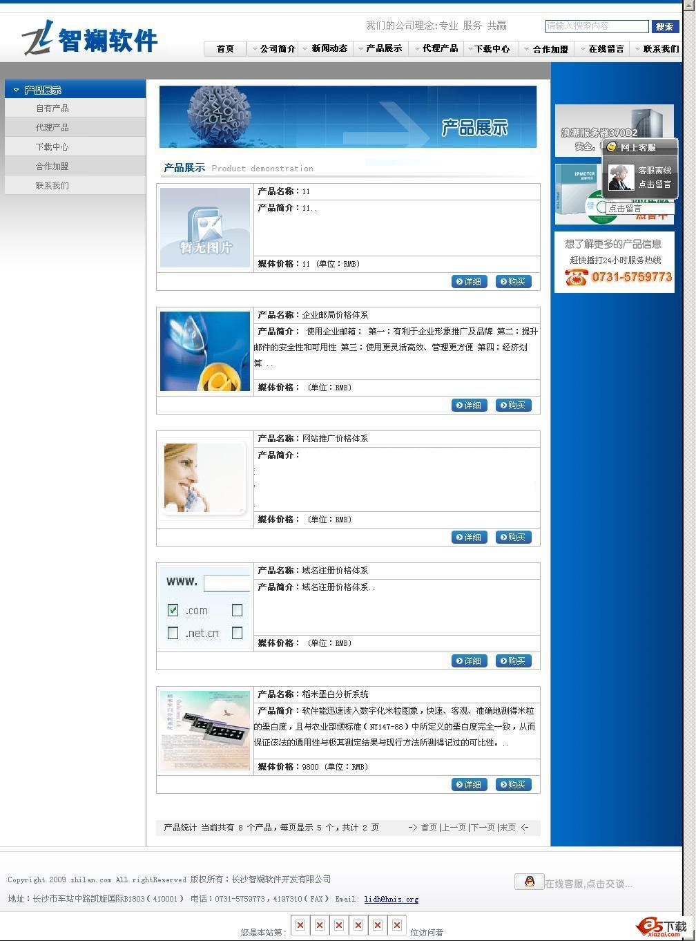 918软件公司展示系统软件简介一个很漂亮的企业型网站 产品展示 代理产品 下载中心 合作加盟 客户案例网站最大的特点是加入了一些网页特效,美观方面很不错。 包括在线购买平台。 网站后台操作简单明了。 后台用户名密码admin