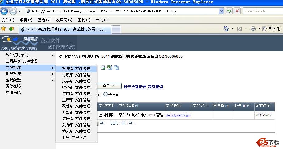 征对很多企业IT管理员提出的目前企业电子文件难以管理及维护问题. 目前大部分企业都有企业网络硬盘存放文件,但对于文件的查找及分类还有用户权限非常乱,对IT管理人员来说比较费力. 现在开发了"企业文件ASP管理系统", 采购B/S架构.开发平台为ASP+ACCESS.