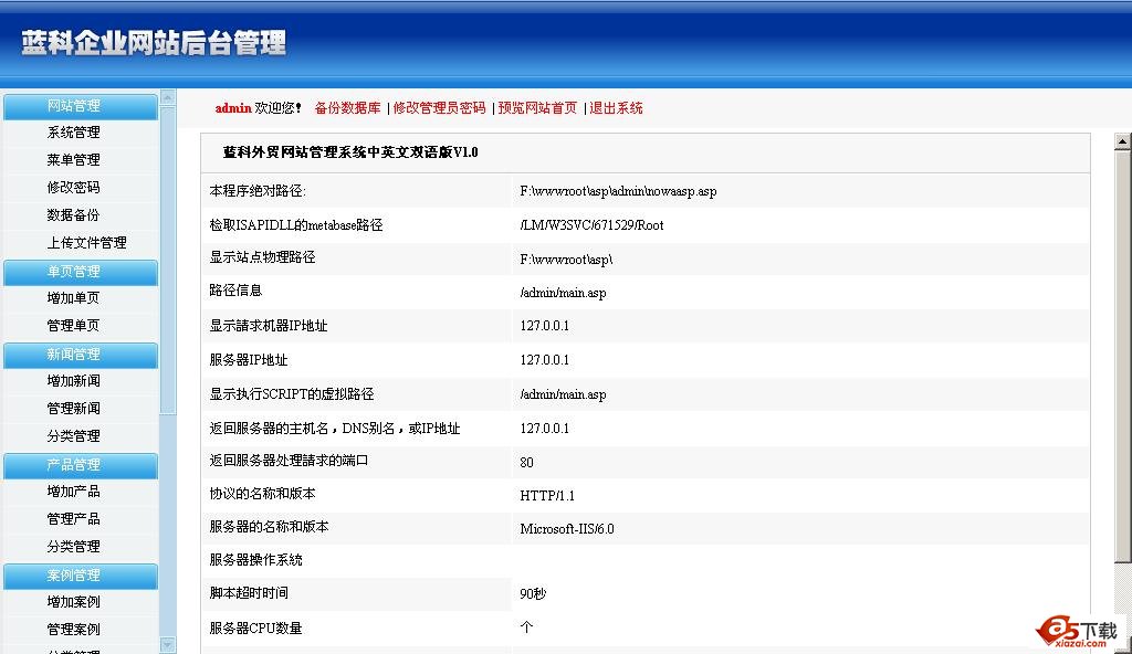 蓝科外贸网站管理系统中英文双语版V1.8 是针对外贸中小企业而开发的具有简单易用、功能强大,性价比高、扩展性好,安全性高、稳定性好的系统,可以加快外贸企业网站开发的速度和减少开发的成本。让不同的用户在懂的少许html语言的基础上,就能够快速的构建一个风格个性化的而功能强大的中英文企业网站。