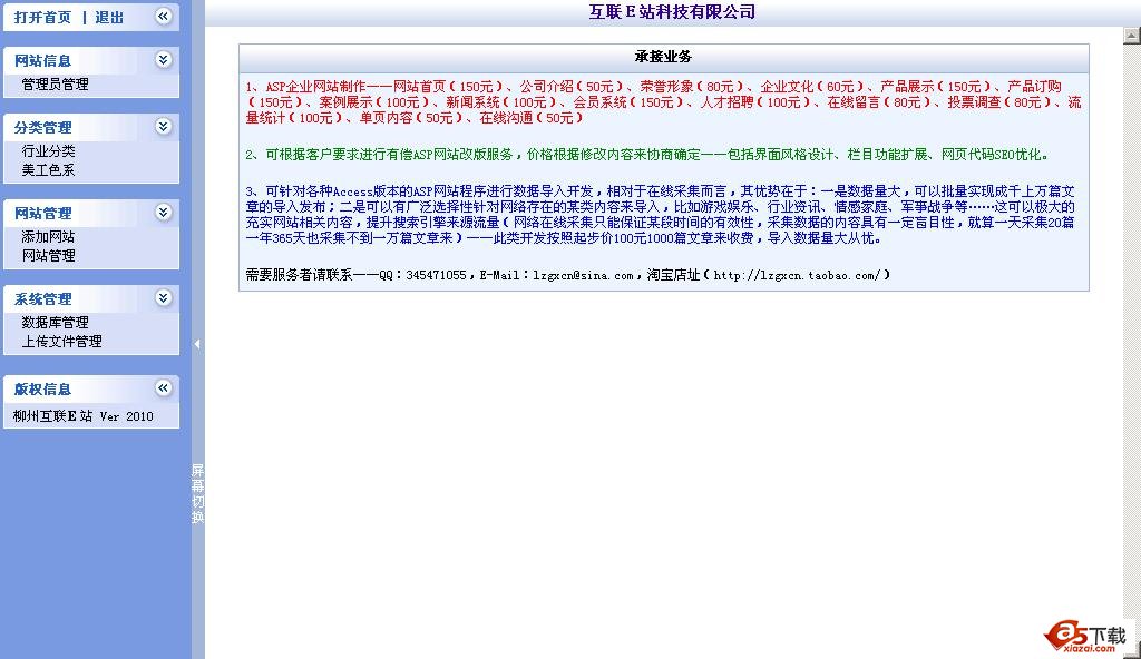 包含“管理员管理/行业分类/颜色分类/添加网站/管理网站/数据库和上传文件管理”的完整功能。