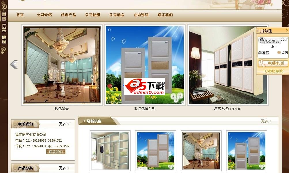 前台栏目有:首页 公司介绍 供应产品 公司相册 公司动态 业内资讯 联系我们