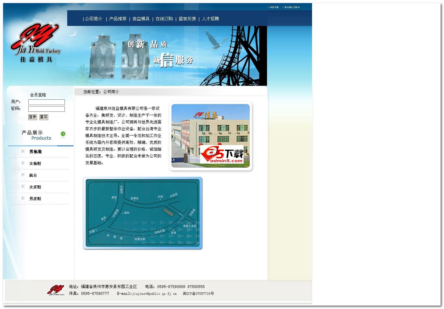 蓝色简洁模具公司网站源码 后台地址:admin 用户名:admin 密码:admin