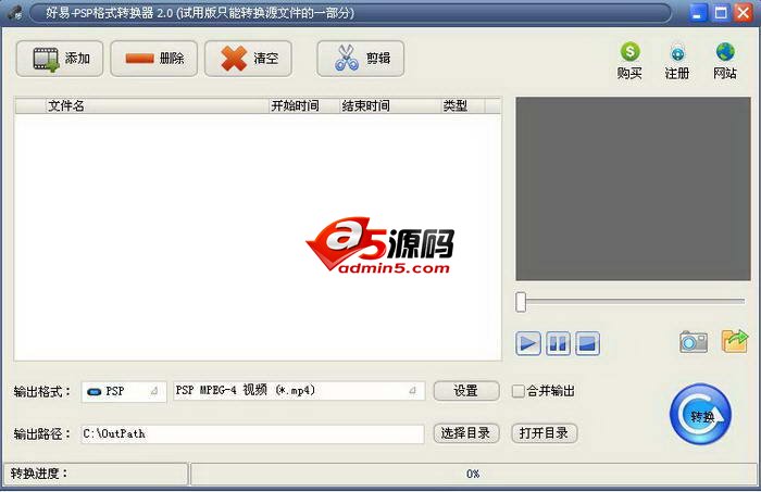 好易-PSP格式转换器可以高速地将各种主流视频格式,如RM、RMVB、VOB、DAT、VCD、SVCD、WMV、ASF、FLV、MKV、MOV、QT、MPEG、AVI、MP4、3GP等格式,编辑转换为SONY PSP和PS3支持的MP4等视频格式。好易-PSP格式转换器人性化界面,易操作,功能强,具备H.264编码功能,并支持从视频中分离输出音频M4A、AAC、MP3、MP2、WMA、AMR等格式。输出格式已预设好,简单点选就可以输出PSP兼容的音频和视频格式。对于不常见的高清视频、MTS、MOD、TS、M2TS均能进行转换。