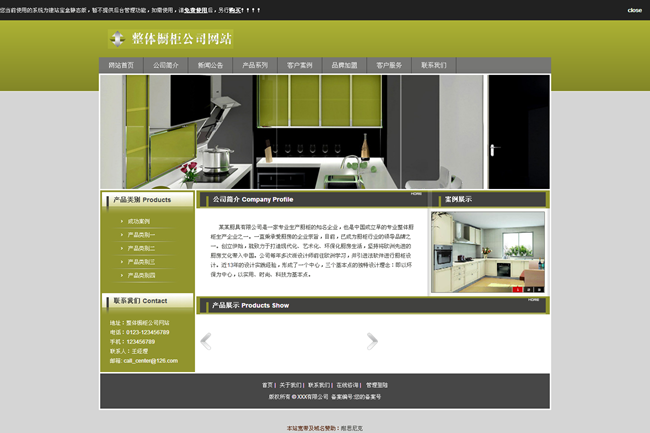 橱柜公司网站模板,草绿色为主,简洁大气,适合厨具家居公司使用