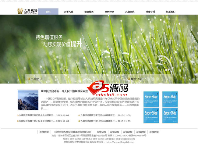 简单投资管理公司网站模板,全套模板,包括首页、公司简介、增值服务、案例分享、企业资讯、行业专刊、联系我们等多个网站模板页面。