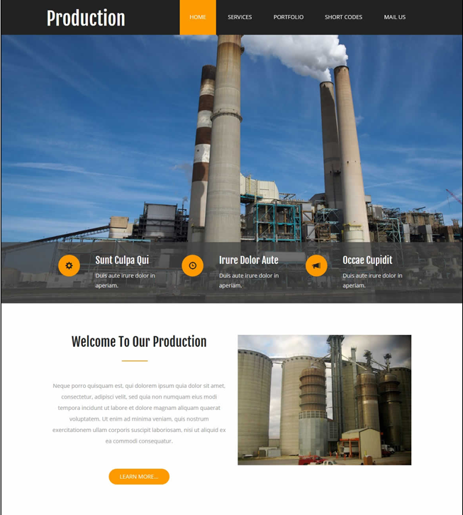 工业生产建筑企业网站模板基于Bootstrap3.3.4制作,响应式设计,兼容PC端和手机移动端,全套模板,包括首页、服务、作品集、短代码、联系等多个网站模板页面。