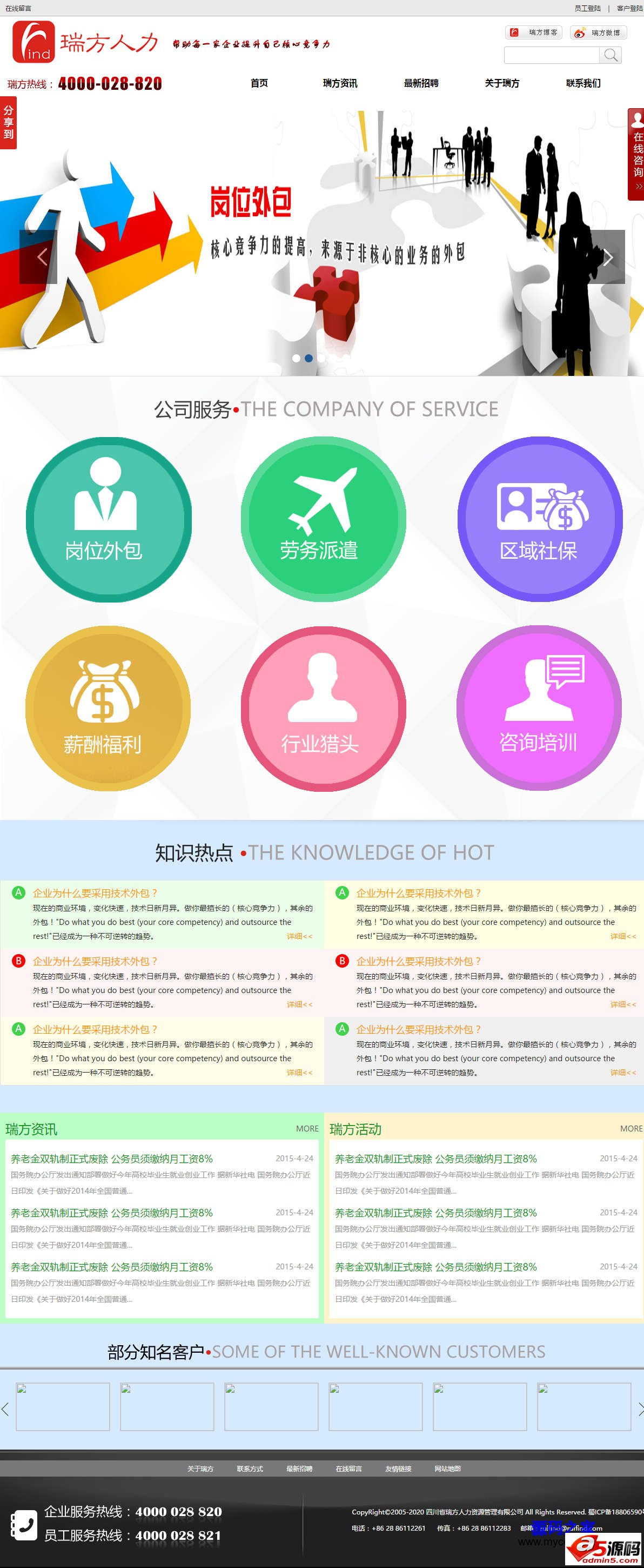 人力资源管理公司网站模板,全套模板,包括首页、瑞方资讯、最新招聘、关于瑞方、联系我们等多个网站模板页面。