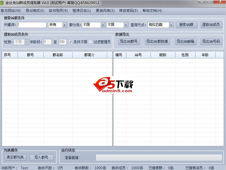 1、金达免加群成员提取器,可导出搜索出来的号码和邮箱