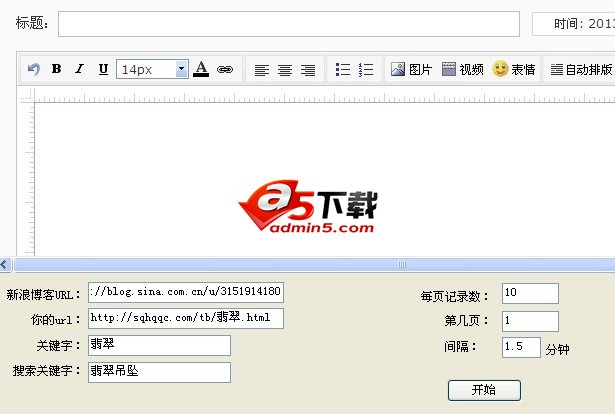 填写你的新浪博客URL、你的网址url和关键字、搜索关键字点击开始即可。