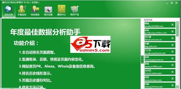 傲杰SEO优化分析助手是一款帮助SEO从业人员分析数据的辅助工具,有着非常强大的数据收集及协助分析能力。