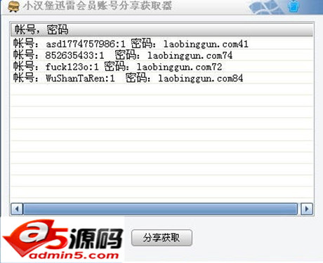 小汉堡迅雷会员账号分享获取器 v6月13日更新内容: 增加了采集会员帐号的准确性和速度