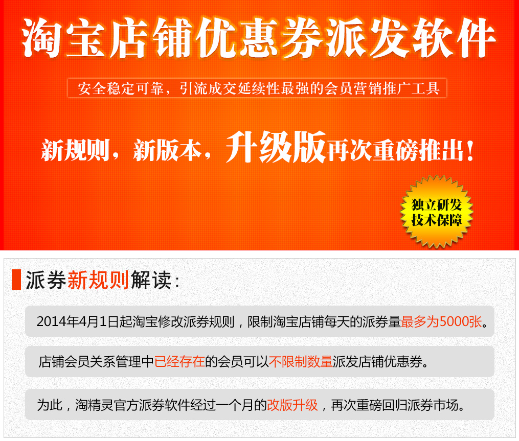 淘宝优惠券批量派送软件历时三年有余,最安全稳定可靠,引流成交延续性最强的会员营销推广工具!