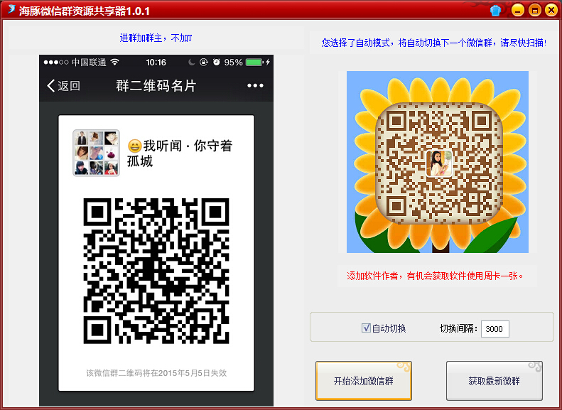 在手机上添加微信慢、寻找难这些我们已经帮你想好了,定时切换下一个群二维码,时间间隔可以自定义设定;