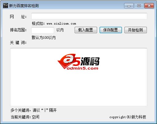 新力百度排名检测是一款用于检测百度排名的软件。适合小批量检测,设有载入配置和保存相关配置,更方便使用。