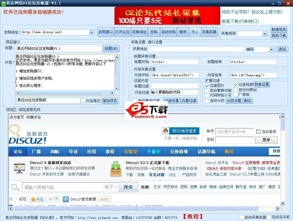 易达DZ论坛发贴器 v2.5包括V2.4所有功能,更新内容以下
