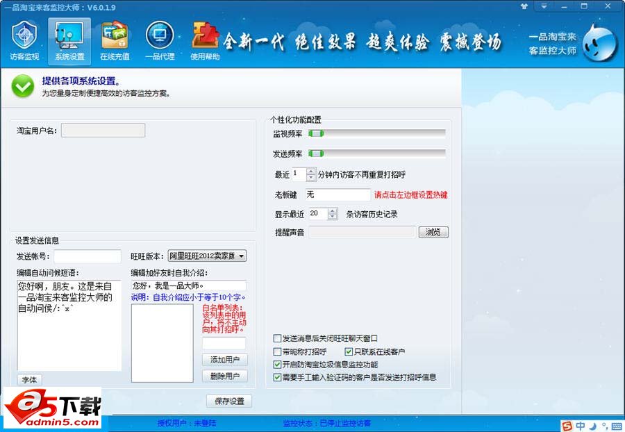 新一代一品大师来客提醒软件让您帐号无忧秒速侦测买家信息,显示买家ID,及时了解买家购买记录,避免差评师,全自动升级。增加独特的老板键,让您在办公室监控顾客的时候还不被老板抓住哦。让各位卖家不用守株待兔,坐等顾客咨询,每天看着量子那么多人,咨询的人却寥寥无几,让我们一品大师来帮助您解决这个问题吧。