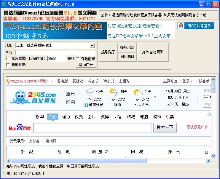 易达DZ论坛顶贴器V1.8是的易达网络开发的一个专门针DZ论坛顶贴器!官方郑重承诺永久免费