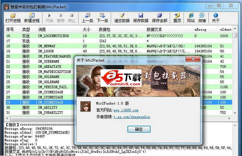 彗星传奇封包拦截器(Mir2Packet),拦截、解密、分析传奇封包,分析传奇客户端网络通讯的必备工具。