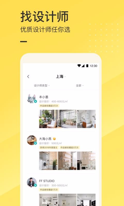 5、用户可以在该平台中查找和选择设计师,并且还可以在线联系并线下见面;