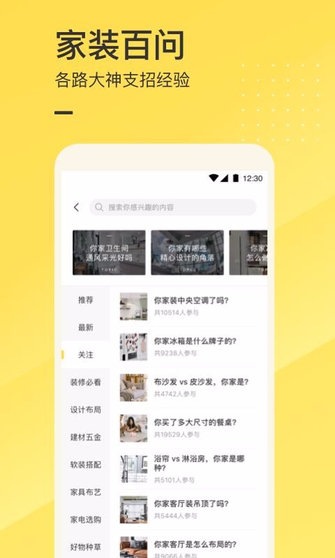 1、该软件为用户提供了全程的装修指导,让用户避免踩坑和解决遇到的难题;