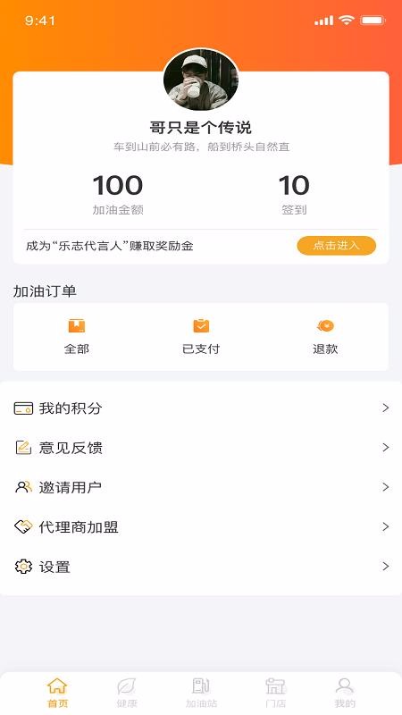 3、一目了然的首页个人数据信息,首页个人数据栏展示了加油金额、签到等数据内容;