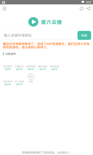 爱6云搜是一款方便快捷的搜索软件,让用户可以轻松搜索到想看的内容。它提供了各种各样的免费资源,并且所有视频都可以以高清流畅的方式播放。用户可以边选边看,支持全屏关灯,还可以根据自己的需要调节清晰度。软件还提供了快速检索整个网络的磁力种子资源的服务,并且检索到的资源可以一键复制,方便导入下载工具进行下载。