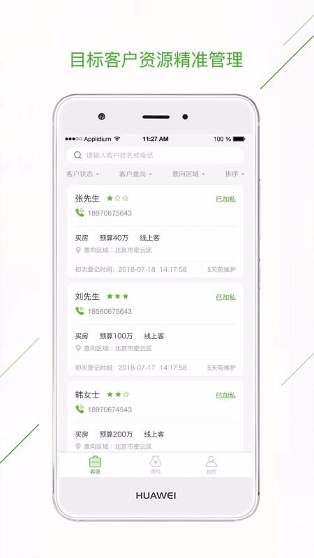 1、平台推送的客户管理功能非常灵活实用,录入客源更加方便快捷;