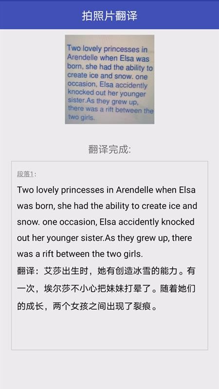 2、马上拍摄照片并开始翻译,查看提取的文字结果和翻译的内容