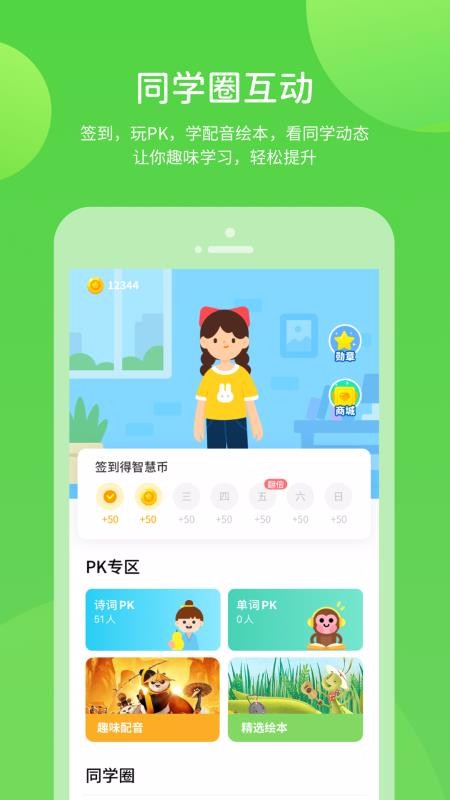 6、趣味的同学互动学习模式,专门设置了同学圈互动中心并提供PK专区和同学圈动态等互动版块;
