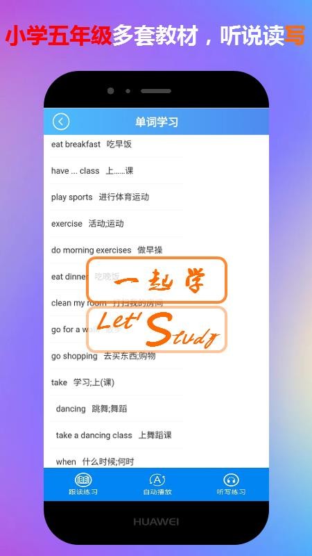 五年级英语上下册一起学app是一款面向小学五年级学生的在线学习软件,它在完整还原课本内容的同时,增加了有声点读功能,每个用户都可以快速的播放课本音频,轻松即可学习到正确的发音方式,让学习变得更加的生动,从此告别枯燥的课本文字,显著提升学习的效率;除了基本的点读功能以外,应用还拥有跟读练习板块,只需轻轻一点,就可以录制自己的发声音频,可以快速的进行对照,纠正错误的发音方法,让口语练习的效果更好,能够轻松提升用户的口语水平,非常实用;还等什么,想要在手机上学习英语的朋友赶快下载体验吧。
