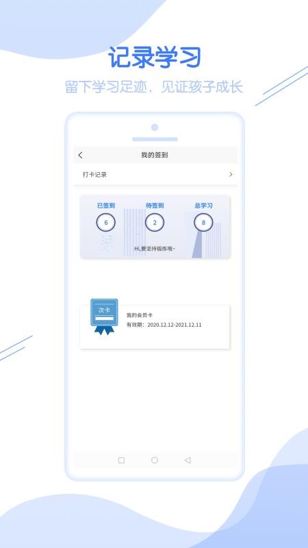 2、在线打卡,提供了打卡功能,可快速打卡,完成学习考勤;
