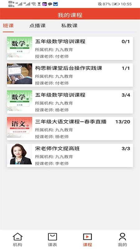 2、用户在软件中能够清晰看到各个课程的老师、机构和时间等信息;