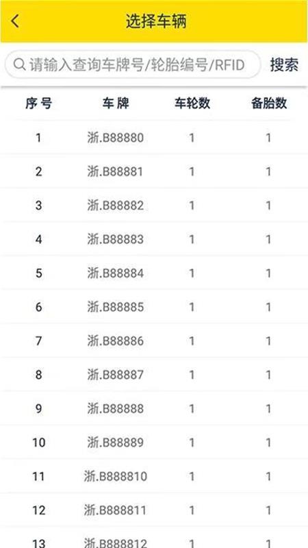 6、备胎数量,将每一个车辆的备胎数量展示在应用上,可迅速的浏览;