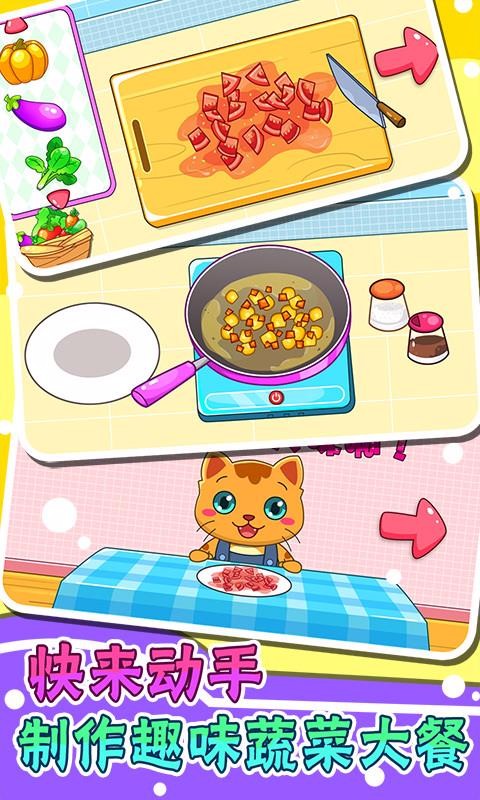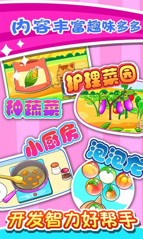 1、多种不同的玩法,为宝宝设置了种蔬菜、玩游戏以及制作蔬菜美食不同的玩法;
