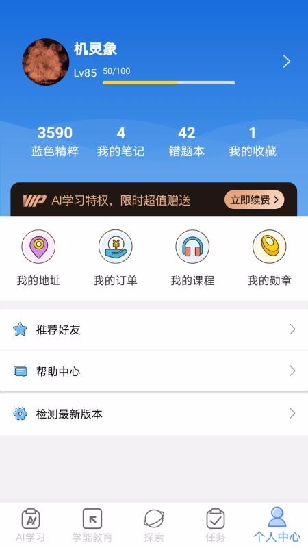 1、统计了自己丰富的数据,能看到自己在平台上获得的蓝色精粹总数、自己笔记数量以及错题本等;