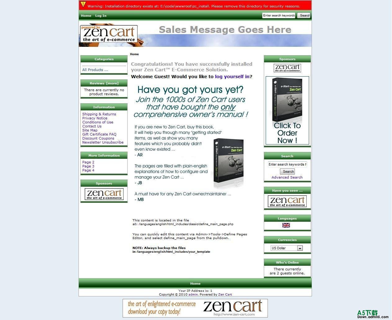 Zen Cart提供了稳定而灵活的电子商店前台,易于更新。Zen Cart把销售商和购物者的需求放在第一位,将带给您的客户全新的网上购物体验。
