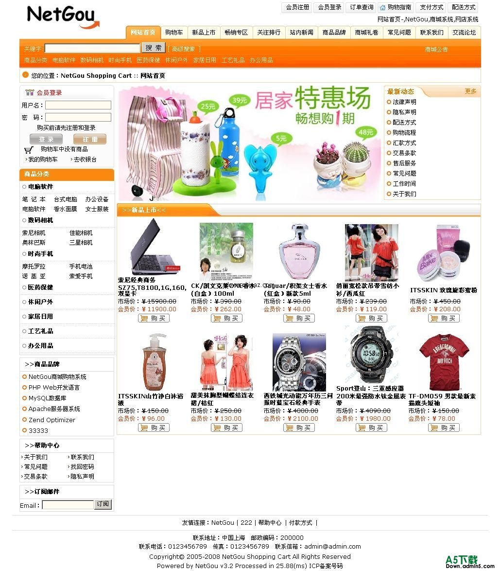 NetGou是一款国内知名的购物系统网店系统,它功能强大完善、运行稳定快速、界面友好人性化、可扩展性强。