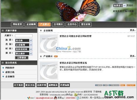 爱普达多语言企业网站管理系统基于PHP+MYSQL开发,集易用性和强大功能为一体,具有丰富多彩的网站模版,灵活的栏目管理和产品、文章、图文、下载、广告、留言系统、等管理功能,支持产品阅读权限控制和会员权限管理,支持Cache网页加速和多语言和购物车和预付款支付,可用于创建各种企业网站 [1]栏目管理